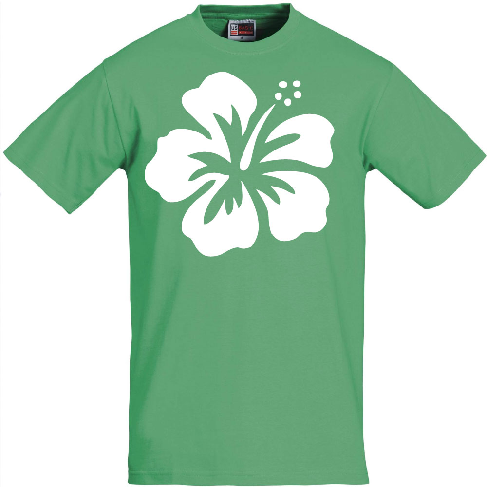t-shirt vert hibiscus, dessin blanc