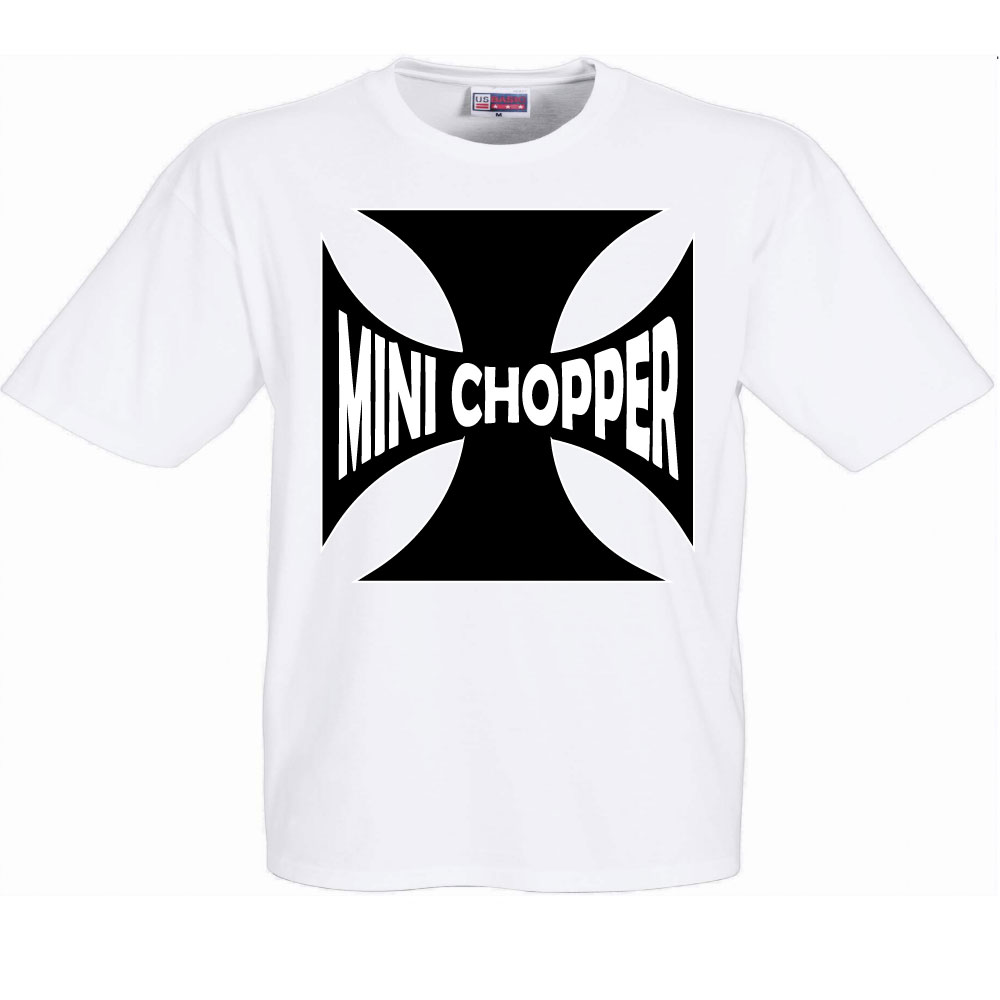 t-shirt blanc mini chopper, image en noir écriture a l’intérieur en blanc