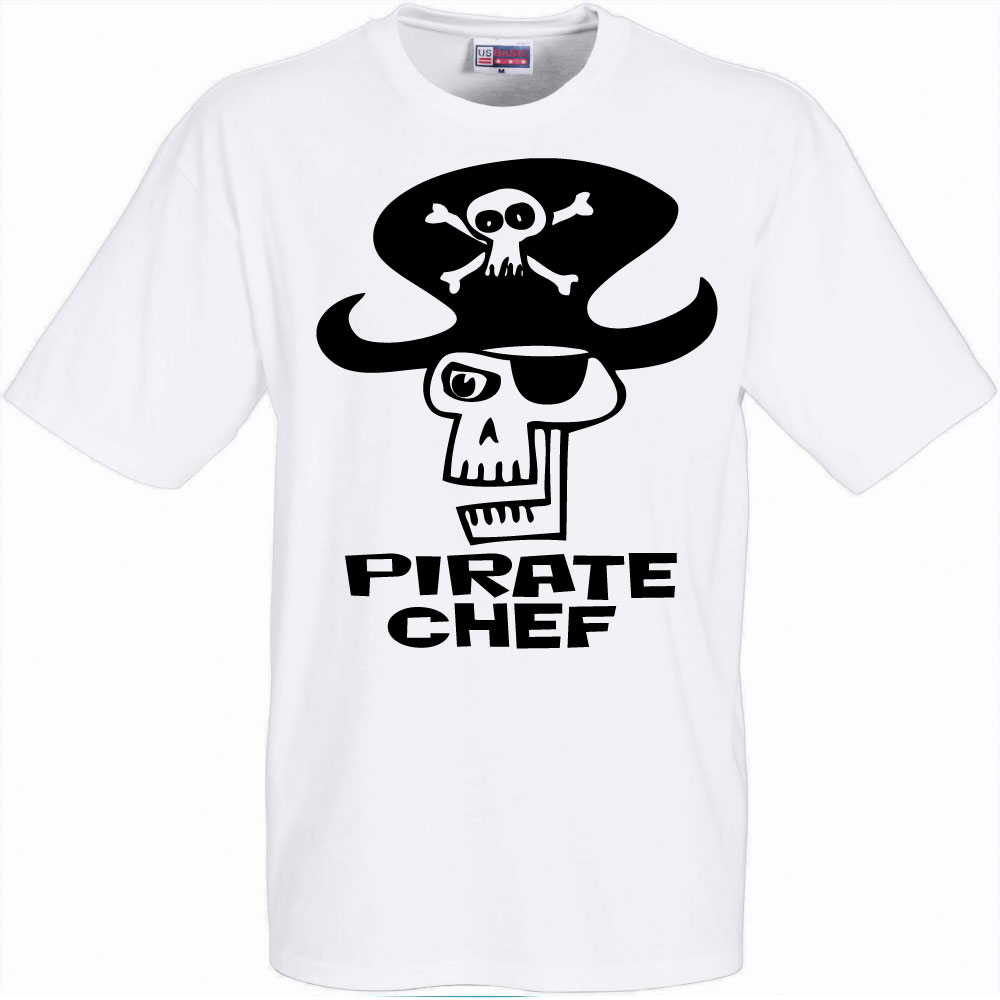 t-shirt blanc pirate chef, dessin et écriture en noir