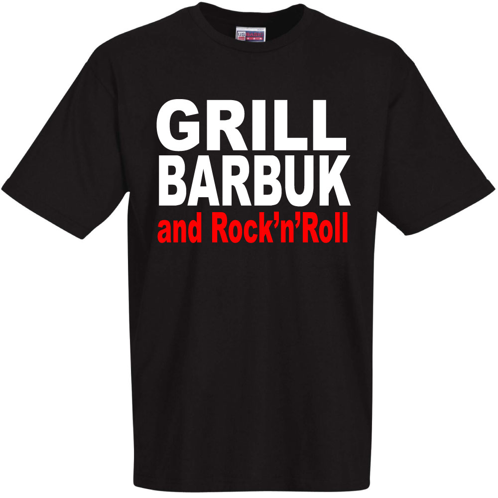 t-shirt noir grill barbuk, and rock n roll ecriture blanc et rouge