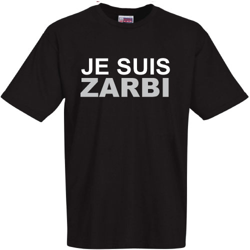 t-shirt noir je suis zarbi, ecriture blanche et gris