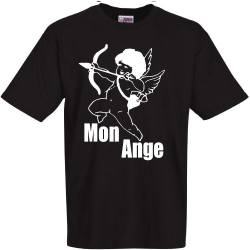 t-shirt noir mon ange, dessin d'un ange gardien en blanc