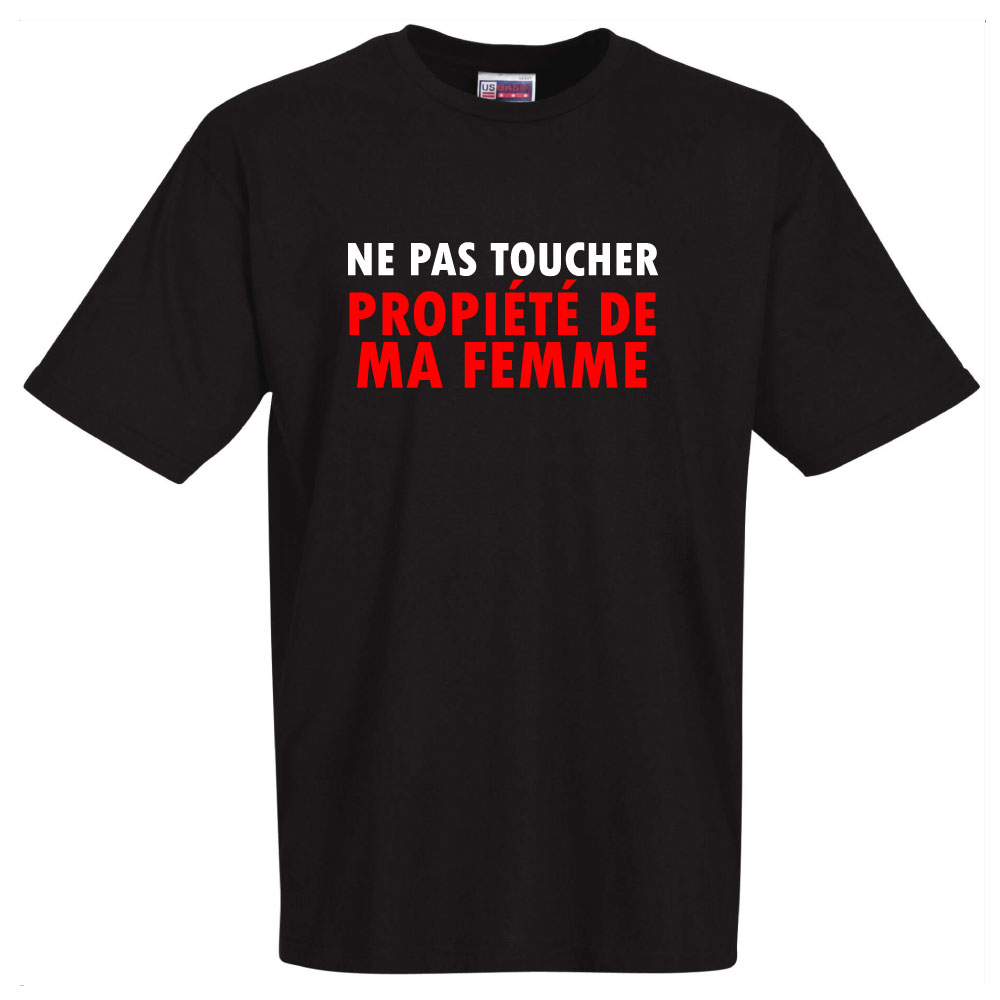 T-shirt humoristique noir "NE PAS TOUCHER propriété de ma femme"