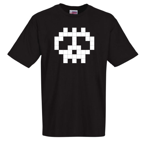 t-shirt noir skull pixel, tete de mort en pixel blanc