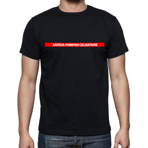 t-shirt noir sppeur pompier celibataire, blanc rouge