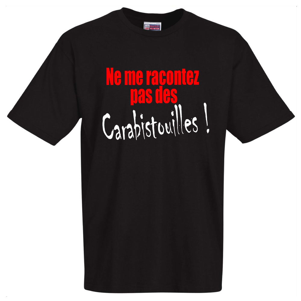 T-shirt humoristique noir Ne me racontez pas des Carabistouilles !