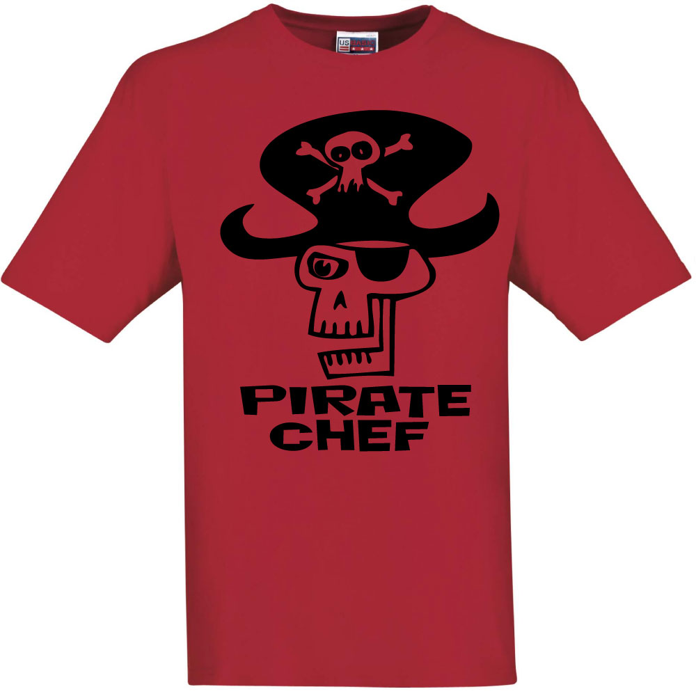 t-shirt rouge pirate chef, dessin et écriture en noir