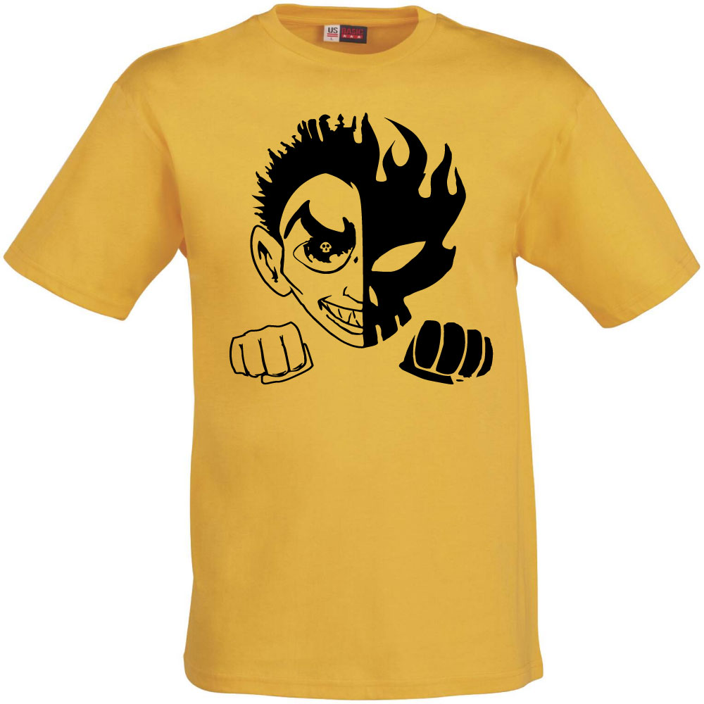 tee shirt jaune avec dessin driver en blanc