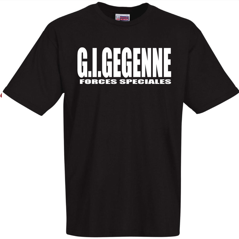tee shirt noir avec écrit "GI GEGENNE" en blanc