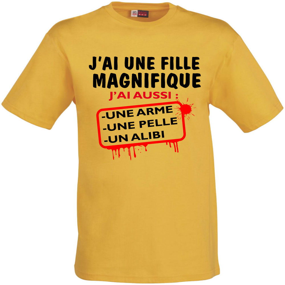 Tee shirt jaune manches courtes j'ai une fille magnifique