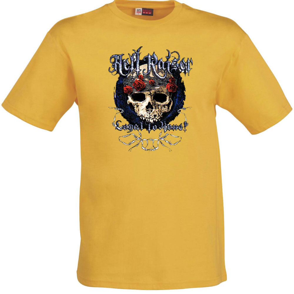 t-shirt jaune tete de mort, imagge de tete de mort en couleurs