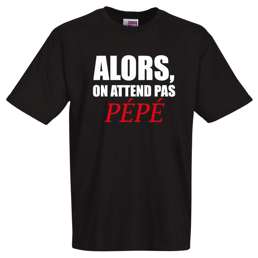 T-shirt humoristique noir "Alors on attend pas Pépé"