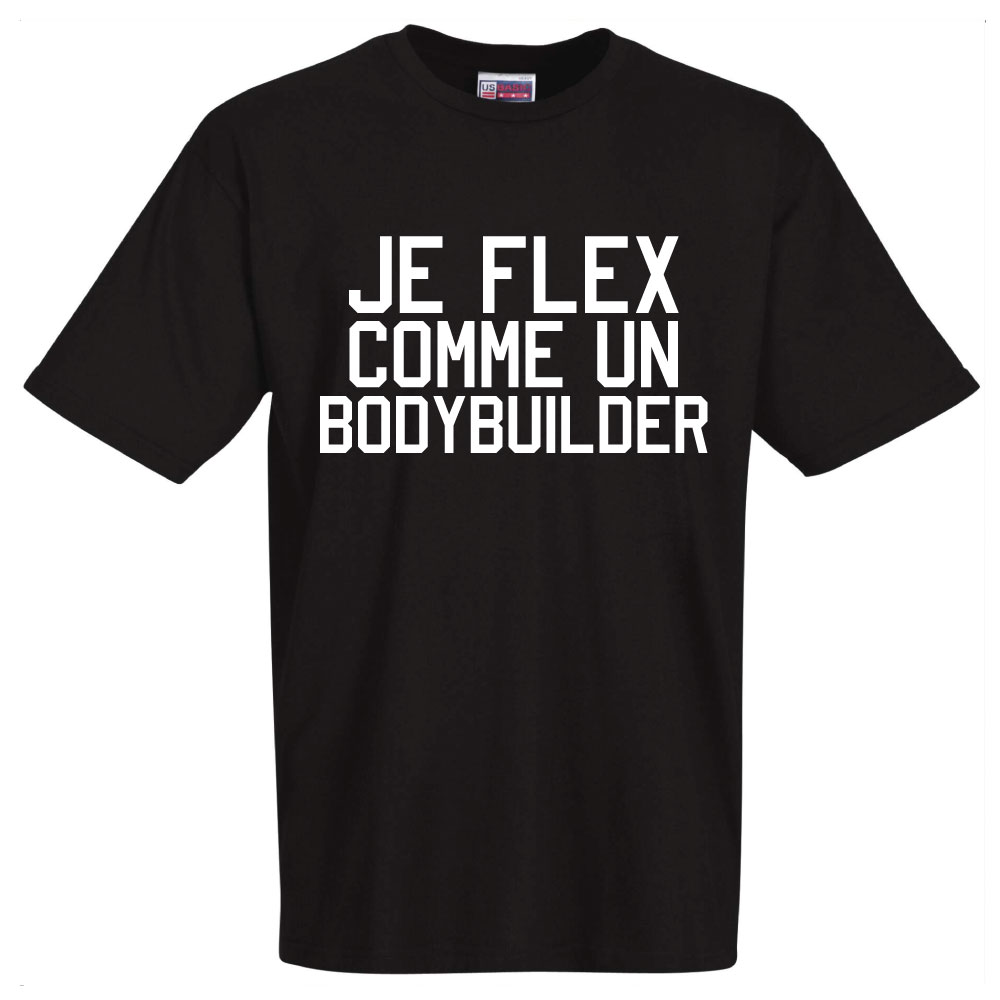 Tee shirt noir Je Flex comme un bodybuilder
