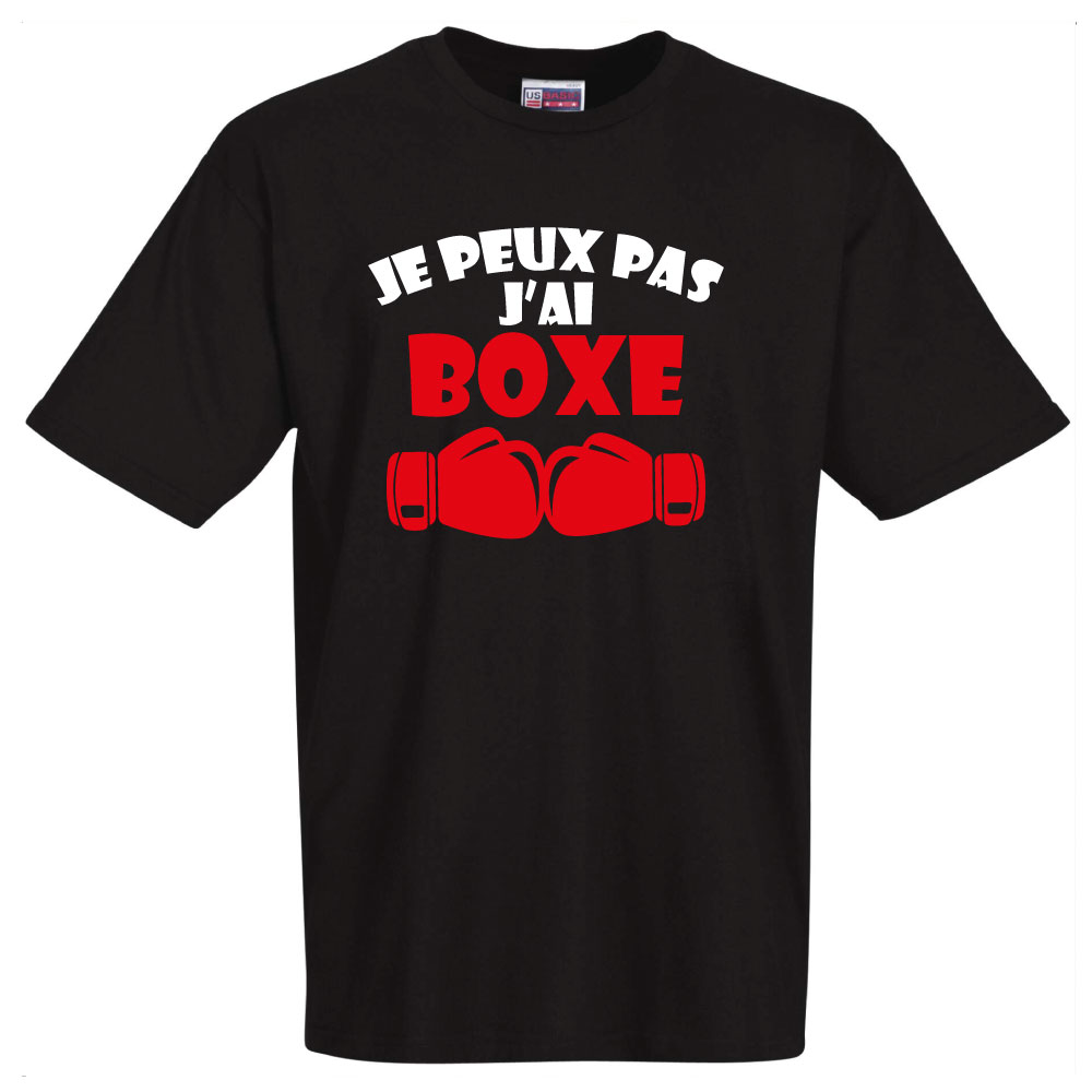T-shirt humoristique noir "Je peux pas j'ai Boxe"