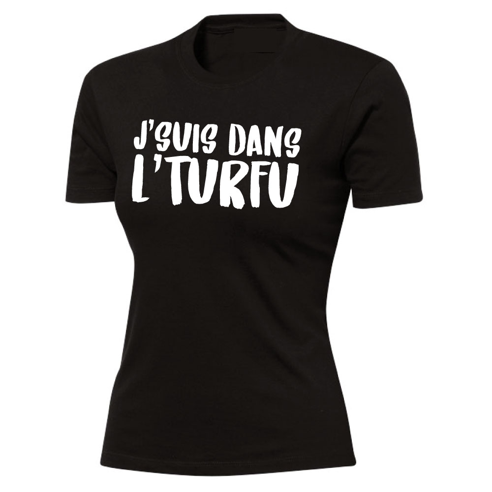 T-shirt noir humoristique "J'suis dans l'turfu"