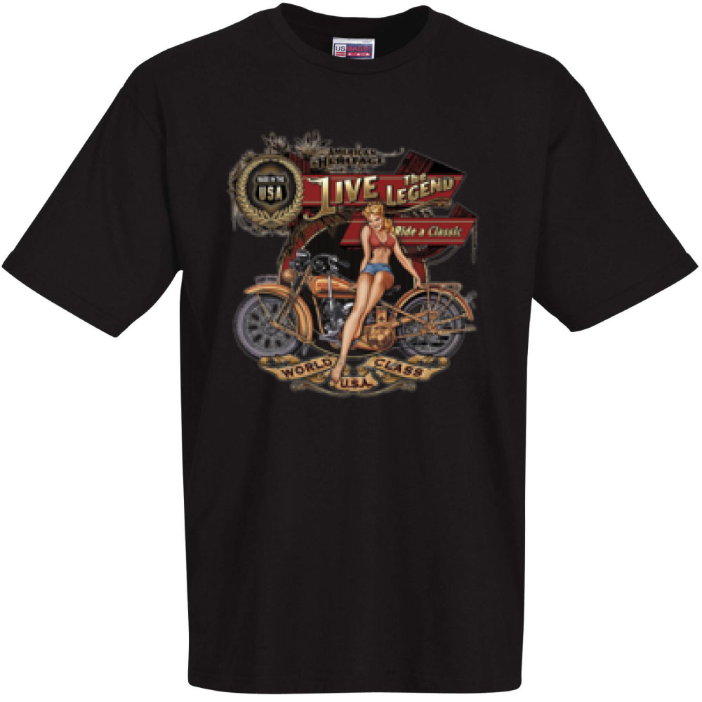 T-shirt noir live to ride legend motos, motos de légendes USA vintage