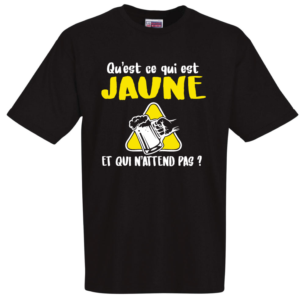 T-shirt humoristique "Qu'est ce qui est jaune et n'attend pas ?"