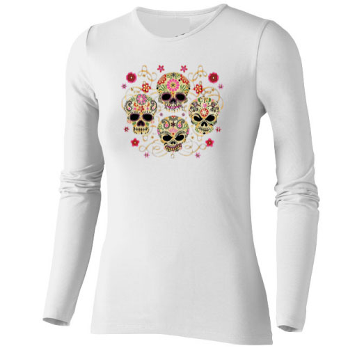 T-shirt blanc skull flowers, quatre tètes de mort mexicaine