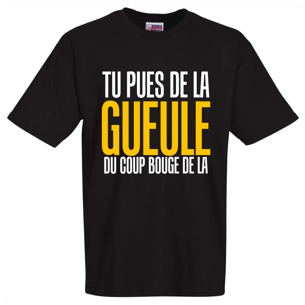 T-shirt noir "Tu pues de la gueule du coup bouge de la"
