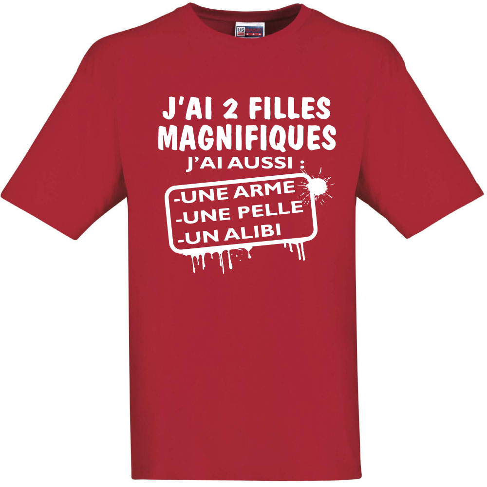 Tee shirt rouge manches courtes j'ai 2 filles magnifiques
