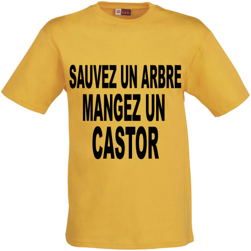 Tee shirt jaune manches courtes sauvez un arbre mangez un castor