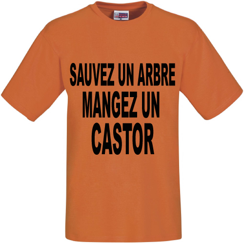 Tee shirt orange manches courtes sauvez un arbre mangez un castor