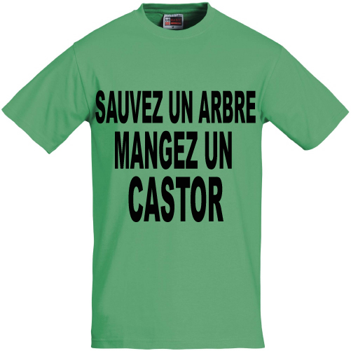 Tee shirt vert pomme manches courtes sauvez un arbre mangez un castor