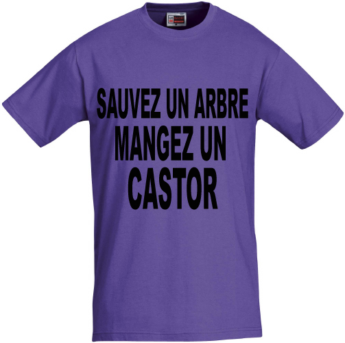 Tee shirt violet manches courtes sauvez un arbre mangez un castor