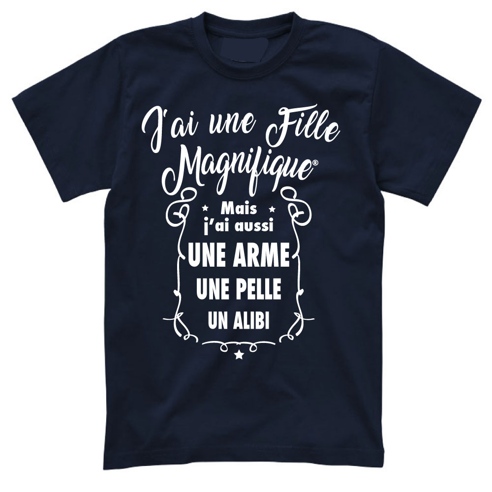Tee shirt bleu marine manches courtes j'ai une fille magnifique®