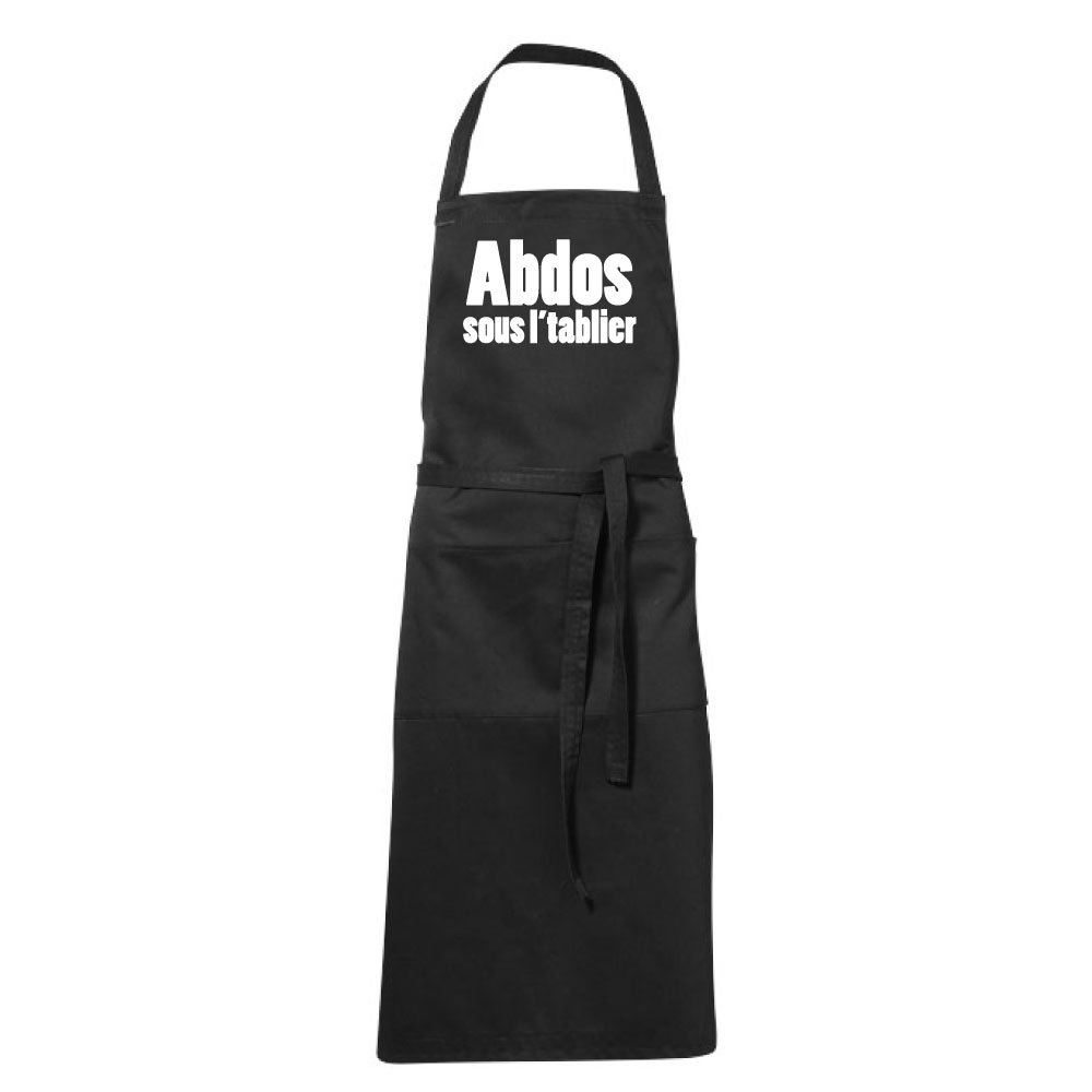 Tablier de cuisine humoristique noir "Abdos sous le tablier"