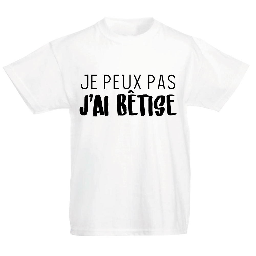 T-shirt blanc enfant je peux pas j'ai bêtise