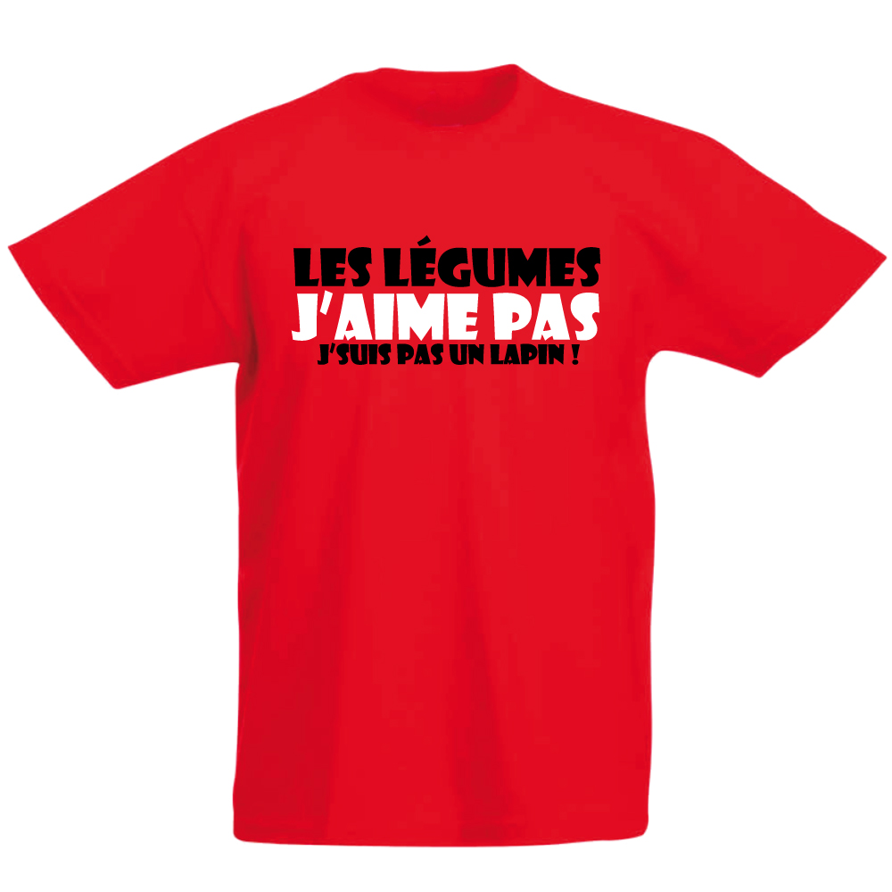 T-shirt humoristique rouge pour enfant "Les légumes J'aime pas"