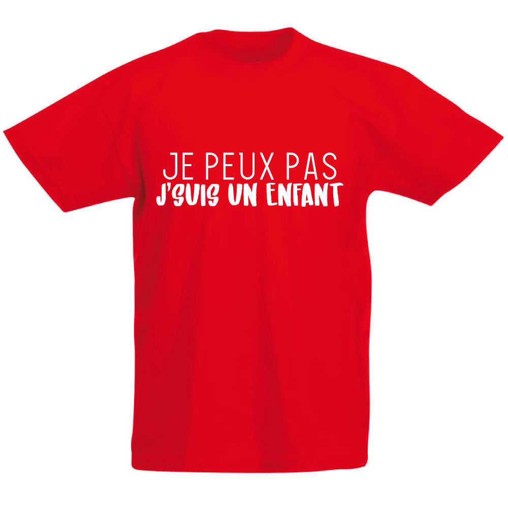 T-shirt enfant rouge humoristique Je peux pas je suis un enfant