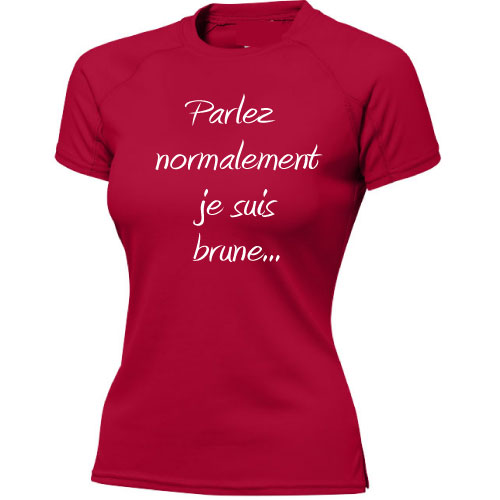 Tee shirt rouge manches courtes parlez moi normalement je suis brune