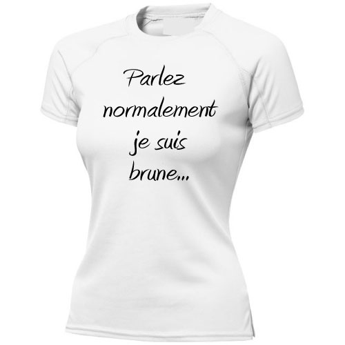 Tee shirt blanc manches courtes parlez normalement je suis brune