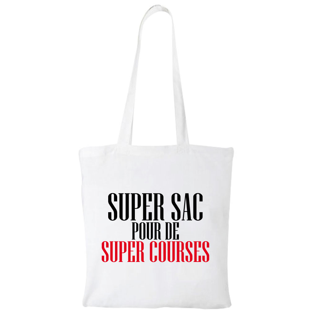 Tote Bag blanc humoristique Super sac pour de Super courses